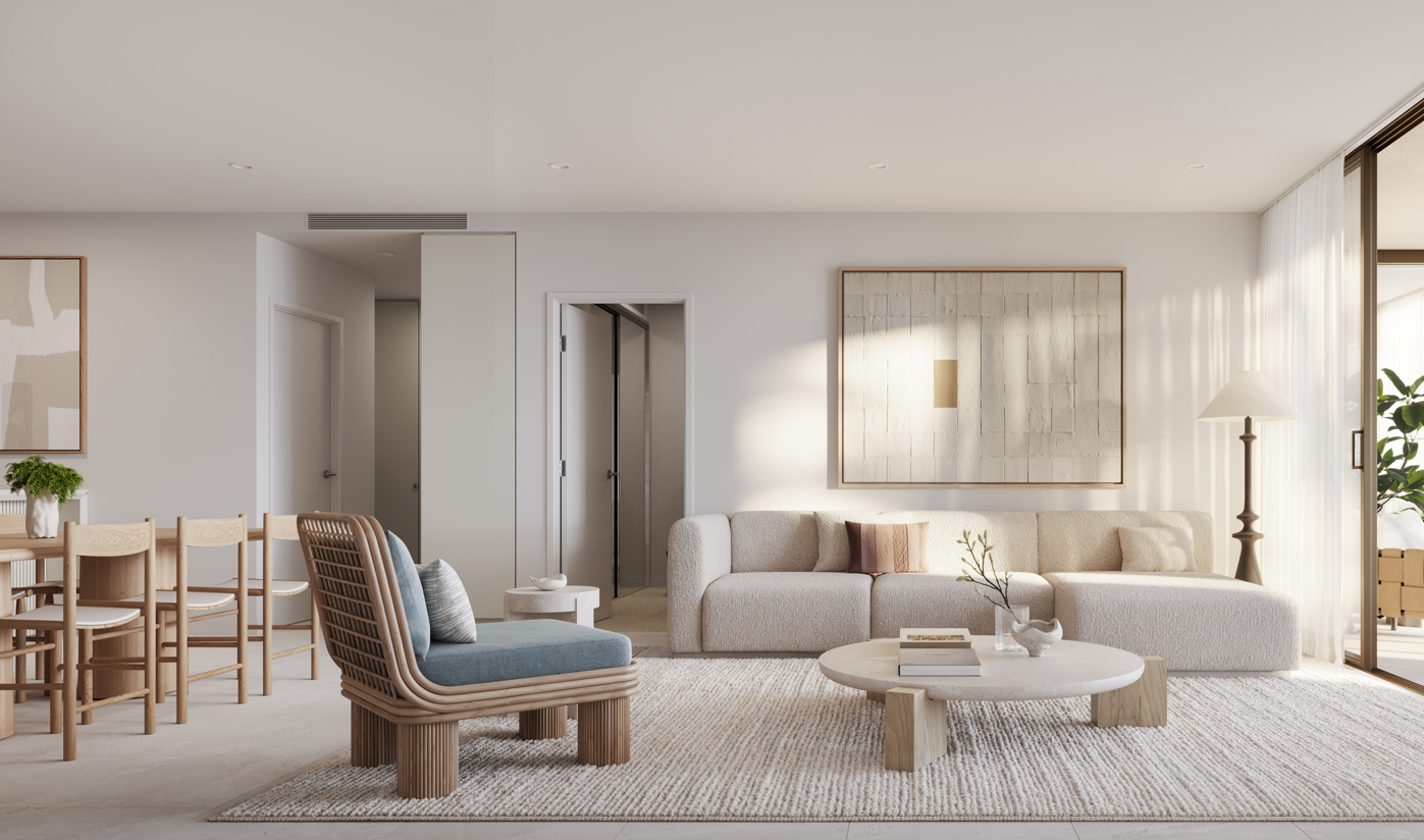 Lighthouse living is defined by its effortless indoor-outdoor flow — from expansive balconies to lush private courtyards, perfect for entertaining or quiet moments by the water. Light-filled interiors reflect the coastal landscape while offering the comfort of home. Gourmet kitchens feature generous islands and oversized butler’s pantries, while elegant bathrooms and master suites with walk-in wardrobes and private ensuites complete the picture of relaxed luxury.